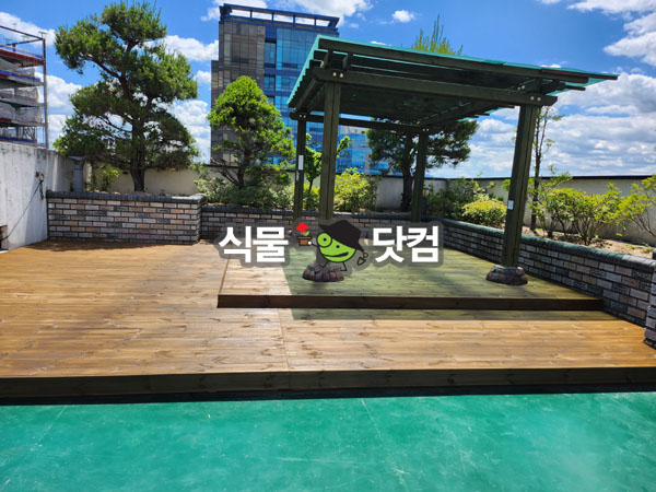 시공설명 :성수동 삼원빌딩 옥상 데크작업,인조잔디,정원철거및전지작업